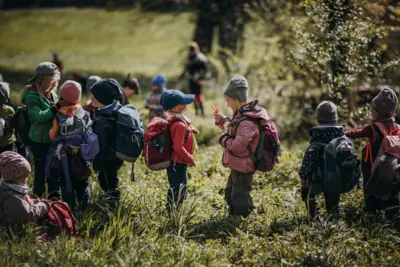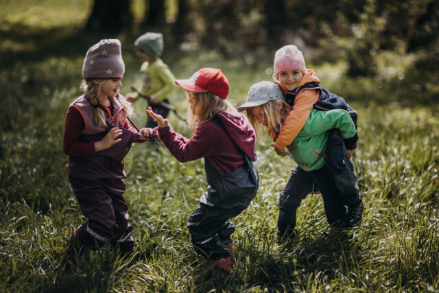 Die Kinder erleben die Natur und deren Gesetze am eigenen Leib. Sie spüren, wie die Bäume im Frühling "ihren Saft anstellen", sie erleben die verschwenderische Vielfalt des Sommers, sie baden im bunten, knisternden Herbstlaub und trotzen im Winter der Kälte. Diese Eindrücke prägen die Kinder sehr und machen sie stark: als Persönlichkeiten und verantwortungsbewusst für andere und ihre Umwelt.